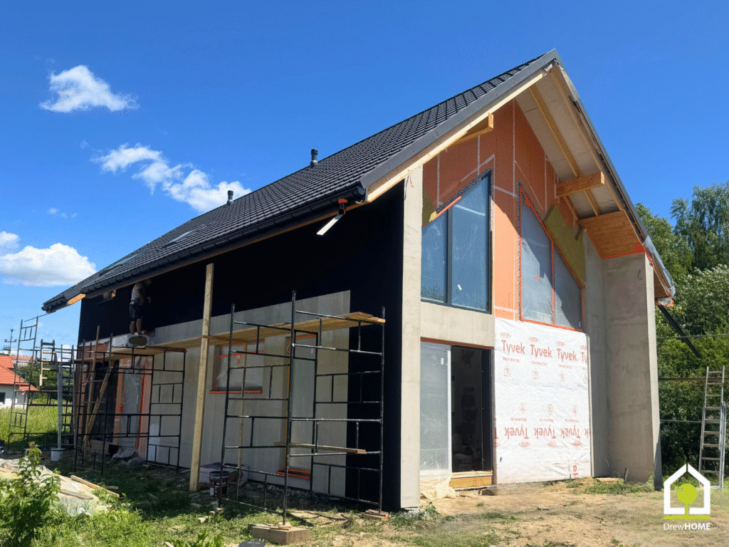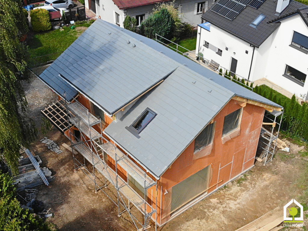 Przed rozpoczęciem całej inwestycji obawiałem się, czytając na internecie „straszne opowieści z placów budowy”. W końcu skontaktowałem się z DrewHome i jak się okazało ich wybór na wykonawcę był strzałem w dziesiątkę. Po prawie pół roku od przykręcenia pierwszej deski podwalinowej do płyty fundamentowej wiem, że miałem szczęście. Ponieważ praktycznie „uczestniczyłem” w całym procesie, od ułożenie desek podwalinowych, aż po ostatnie „dotknięcie” pędzelkiem podbitki, to odbiór był czystą formalnością. Przyszłych inwestorów, którzy są w takiej sytuacji, jak ja byłem rok temu, rozpaczliwie szukających tego dobrego, sprawdzonego wykonawcy, próbujący uzyskać naprawdę prawdziwe opinie (a nie wyssane z palca słodkie opowieści) zapraszam do siebie, można zobaczyć i dotknąć. Zrobiłem setki zdjęć z wszystkich etapów, dokumentując to na własne potrzeby (choćby aby wiedzieć co i gdzie jest „pod tynkiem”). A własnie to jest najważniejsze, co jest tam w środku w konstrukcji domu – tego się już nie zobaczy na pięknym i wykończonym budynku. Powiem tak: ekipy DrewHome nie „budowały” tak po prostu, ale tworzyły nasz domek jak dzieło sztuki. Nie było tam miejsca „na skróty” albo „z tego się nie strzela”. Akurat jestem z tych inwestorów, co to lubią wiedzieć co, jak i dlaczego. Więc na placu budowy byłem prawie co drugi dzień z zainteresowaniem podglądając technikę ich pracy. A było na co patrzeć, widząc jak oni są zgrani ze sobą – praca zespołowa, ale porozumiewanie się prawie bez słów. Mimo to zawsze mieli czas aby odpowiedzieć na moje pytania albo wyjaśnić „dlaczego tak to się robi”. Teraz, gdy zostałem zam na sam z domem dokładnie takim jak sobie wymyśliłem pozostaje czas na podziękowania. Dziękuje ekipie Miszy, ludziom, którzy są dumni ze swojego dzieła, u których „może być” nie występuje w słowniku. Dziękuję ekipie Mirka (elektryka) i ludzi od wody, którzy adoptując się do restrykcji COVID19 pracowali non stop od rana do rana i uzbroili dom w kilometry kabli i dziesiątki metrów rur (naprawdę w domu jest ponad 2 km przewodów). Dziękuję ekipie pana Wieśka (dach) – szybko, sprawnie i bezbłędnie. Dziękuję ekipie pana Łuksza – to naprawdę była przyjemność obserwować jak oni pracują. Oczywiście nie pominę tu w podziękowaniach pani Kasi – zawsze pomocna we wszelkich sprawach logistycznych czy doboru materiałów. No i wielkie podziękowania dla pana Wojtka za doskonałą organizację całego przedsięwzięcia, pomocy w rozwiązaniach konstrukcyjnych czy wykończeniowych. Dziękuję całej ekipie DrewHome za bezproblemową inwestycję, wykonanie w terminie i w kosztach. Wiele się przy was nauczyłem.