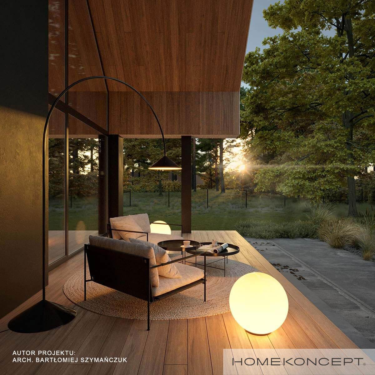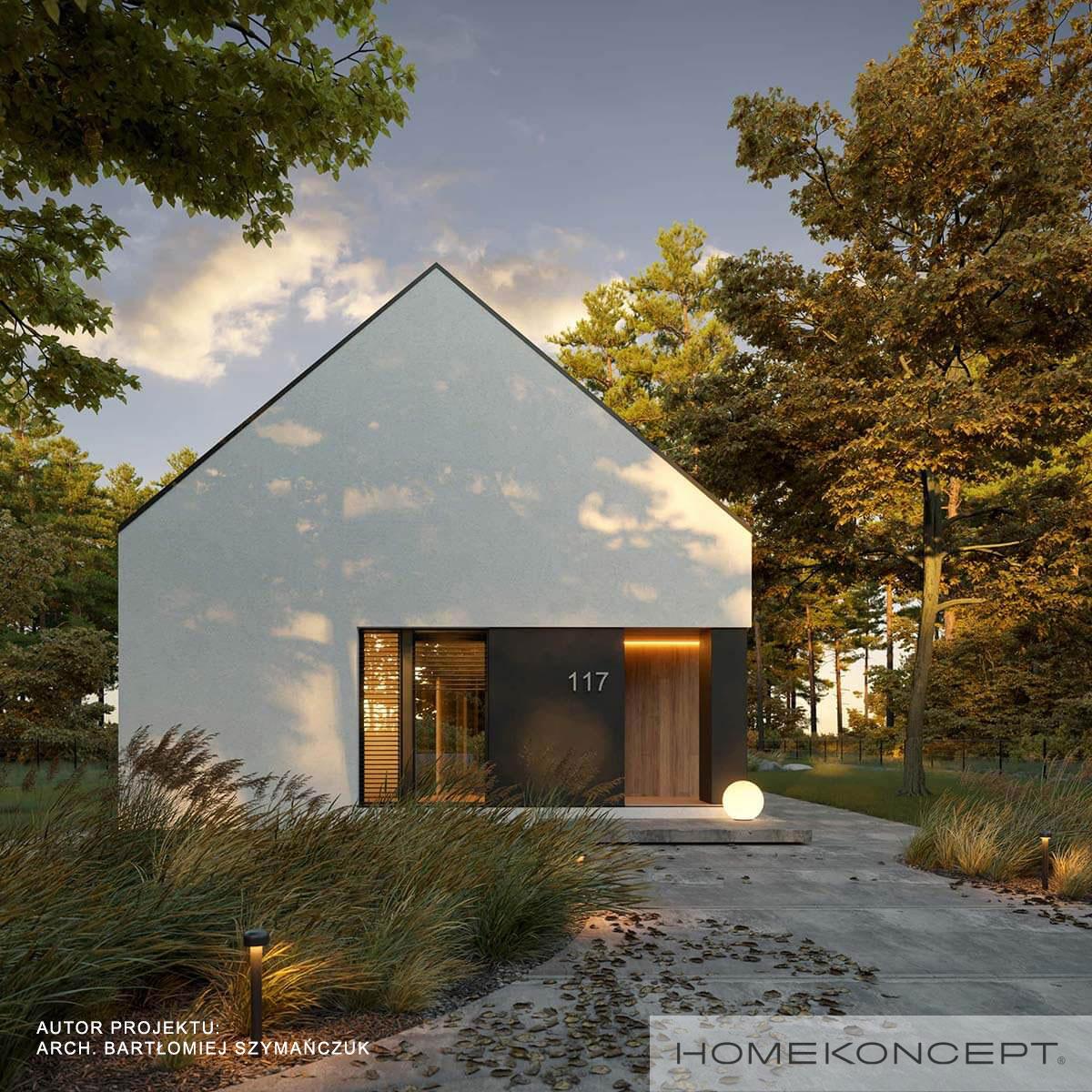 Projekt HOMEKONCEPT 117 to parterowy dom stworzony z myślą o osobach poszukujących eleganckiej prostoty, komfortu i bliskości natury. Na 122 m² powierzchni użytkowej zaplanowano funkcjonalne wnętrze, które idealnie odpowiada potrzebom kilkuosobowej rodziny. Przestronność strefy dziennej z wysokim sufitem oraz duże przeszklenia zapewniają nie tylko dostęp do naturalnego światła, ale również poczucie harmonii i przestrzeni.