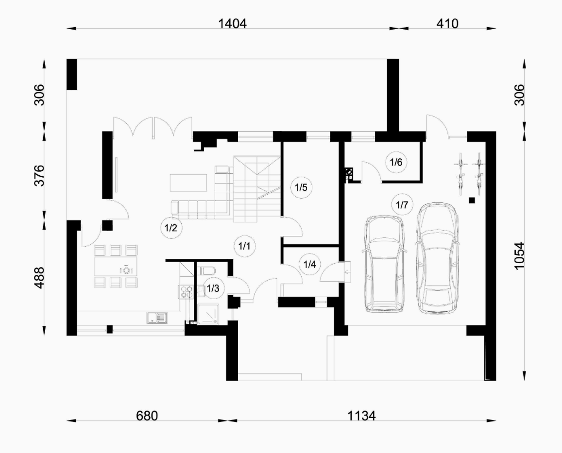 A‑34 to idealny wybór dla rodzin poszukujących domu z charakterem – dużego, ale funkcjonalnego, estetycznego i jednocześnie oszczędnego pod względem organizacji przestrzeni. To projekt, który będzie się wyróżniał w każdym otoczeniu, a jego układ i proporcje sprawdzą się na wielu rodzajach działek.