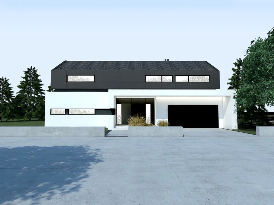 Projekt A‑34 to propozycja dużego, wygodnego domu jednorodzinnego, który łączy klasyczne elementy architektury z nowoczesną, dynamiczną formą. Wyjątkowa bryła budynku przyciąga uwagę, a zastosowana kompozycja materiałów elewacyjnych tworzy spójną i efektowną całość.
