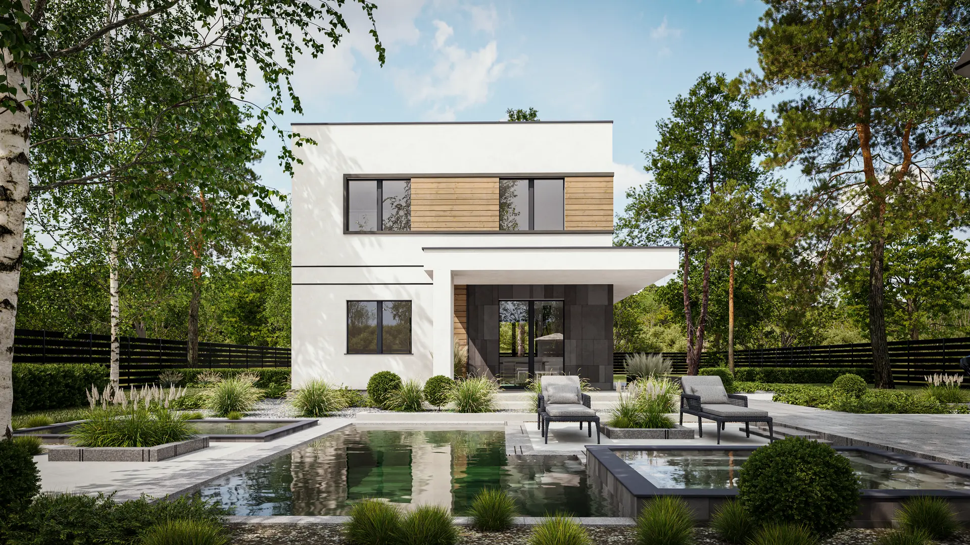 Zx554 – funkcjonalny dom z płaskim dachem w technologii szkieletowej